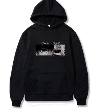 ეს ჰუდი გამოირჩევა კენ კანეკის თვალწარმტაცი დიზაინით Tokyo Ghoul-დან, რომელიც ასახავს მის საკულტო ნახევრად მოღუშულ გარეგნობას ინტენსიური, დეტალური ნამუშევრებით. შავი ძირი შესანიშნავად უხდება კანეკის თეთრ თმას და მის გამორჩეულ ღვარძლიან თვალს, რაც შესანიშნავ, აღელვებულ ატმოსფეროს მატებს. იდეალურია ანიმეების მოყვარულთათვის, დამზადებულია რბილი, კარგი ხარისხის ქსოვილით, იდეალურია ყოველდღიური ტარებისთვის ან სერიალისადმი თქვენი სიყვარულის გამოსახატავად.